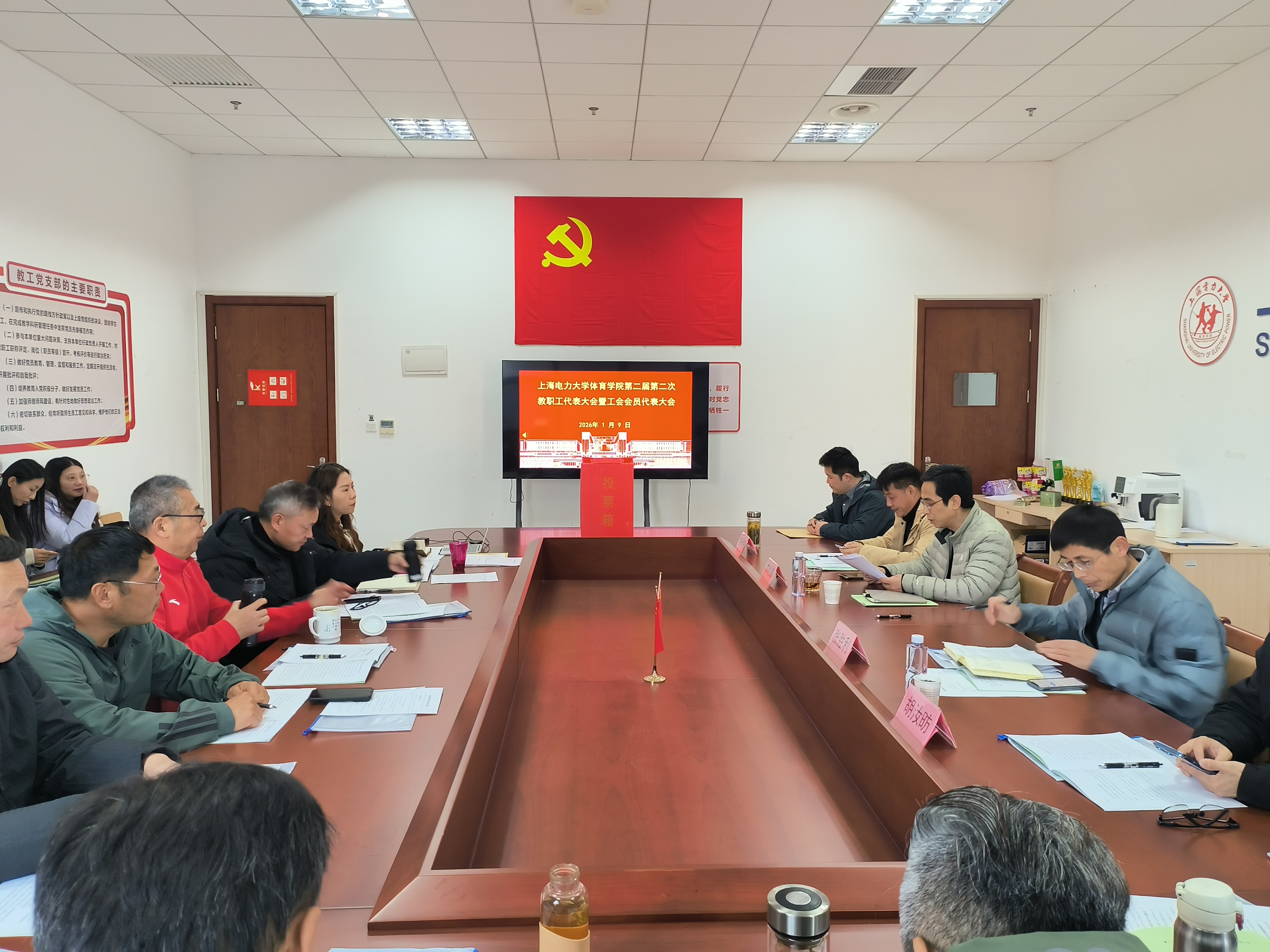 为深入贯彻新时代党的组织路线,规范干部选拔任用工作,强化民主监督,2026年1月9日,体育学院党委2025年度“一报告两评议”会议在临港校区综合体育馆103会议室顺利召开。学院党政领导班子成员以及全体教师参加会议,会议由学院党委副书记、副院长(主持工作)张胜利主持。